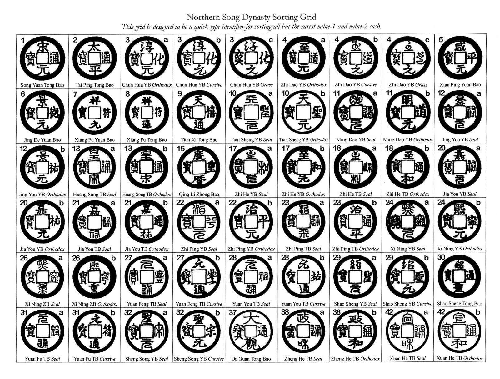 Краткая классификация базовых монет Северной Сун