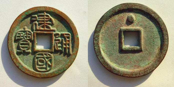 Известно не более 10 монет Jiàn guó tōngbǎo, большая часть раскопаны в северном Цзянсу