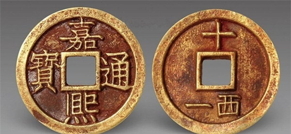 Jiā xī tōngbǎo (嘉熙通宝), следующий девиз Ли-цзуна, когда он пытался умилостивить Небо и привлечь удачу, постоянно их меняя. Это 10 вэней с указанием номинала на обратной стороне и двора (отлито в Сычуани), что, вместе с феноменальной сохранностью, подняло ее аукционную цену до $142 тысяч долларов в 2018 г.