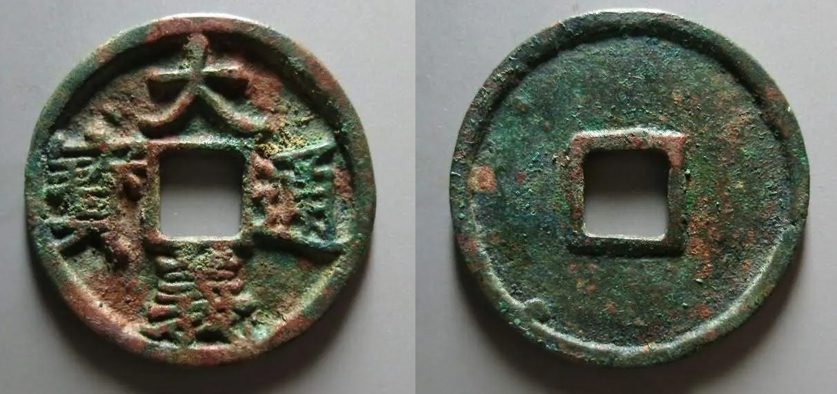 Убивший Сюй Шоухуя Чэнь Юлян провозгласил Великую Хань и тоже не удержался от выпуска монет. Это его dàyì tōngbǎo (大義通寶), проданная за $750, подозрительно дешево. Выпускалась всего год с 1360 по 1361.
