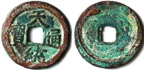 Известный коллекционер Хуа Гуанпу (华光普) в своем монументальном труде "Коллекция китайских монет" (中国古钱大集, выходил в 3 или 4 томах в конце 1990-х) упоминает о ее существовании дважды. Уже известный нам Артур Кул, один из авторитетнейших исследователей китайских монет на Западе в первом томе своей монументальной Encyclopedia of Chinese Coins, vol.1. Bibliography of Far Eastern Numismatology and a Coin Index (Kansas 1967) приводит ее под номером # G-1060 с датой 1363 - 1365 гг. Кроме того, он приводит список изданий, к которых упоминалась эта монета (к сожалению, приведу в том виде, в котором указано в книге, потому что расшифровывать, что кроется за богомерзкой транскрипцией Уэйда — Джайлза уже сил никаких нет). Китайские источники: Chang Ch'ung-i, Liu Yen-t'ing. Ch'ien Chih Hsin Pien (A New Compliation on Coins) 1831; Li Tso-hsien. Ku Ch'üan Hui (An Old Coin Collection) 1864; Fang Jo. Yen Ch'ien Pieh Lu (Another Record About Coins). Tientsin, 1928; Ting Fu-pao. Ku Ch'ien Ta T'zu Tien (An Encyclopedia of Old Coins). Shanghai, 1938; Ting Fu-pao. Ku Ch'ien Ta T'zu Tien Shih I (Supplementing An Encyclopedia of Old Coins). Shanghai, 1939. Также она засветилась в одном японском издании Ando Kajihiko. Toyo Senka Nenpyo (A Chronological Table of Far Eastern Coins). Osaka 1918. На фото - скорее всего подделка, информации о монете найти практически невозможно.