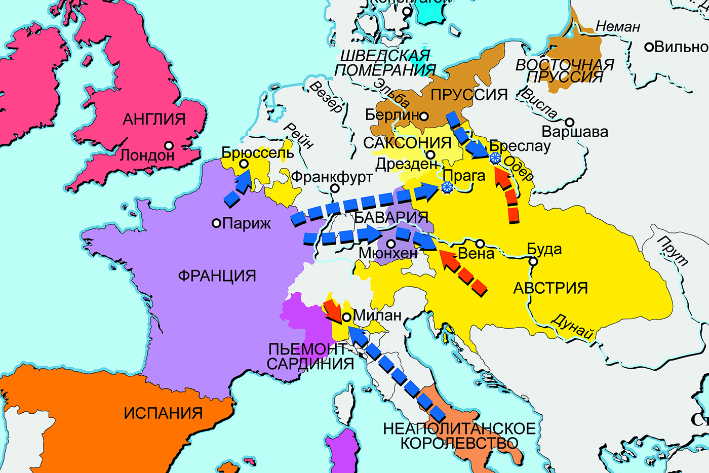 Полки Англии, Испании, Франции, Швеции, Австрии, Баварии, Саксонии, Пруссии