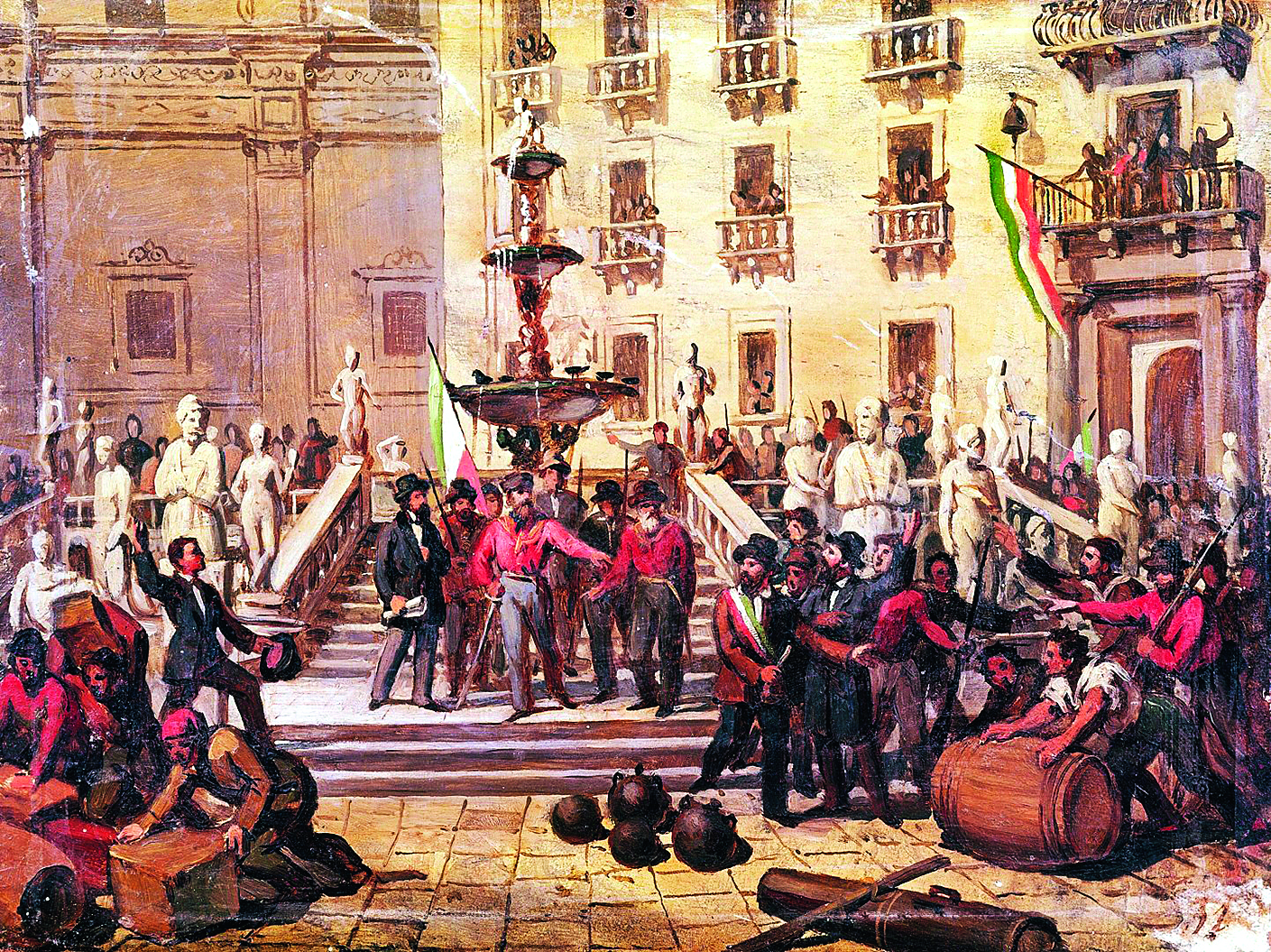 Джузеппе Гарибальди на Пьяцца Претория в Палермо в 1860 г.