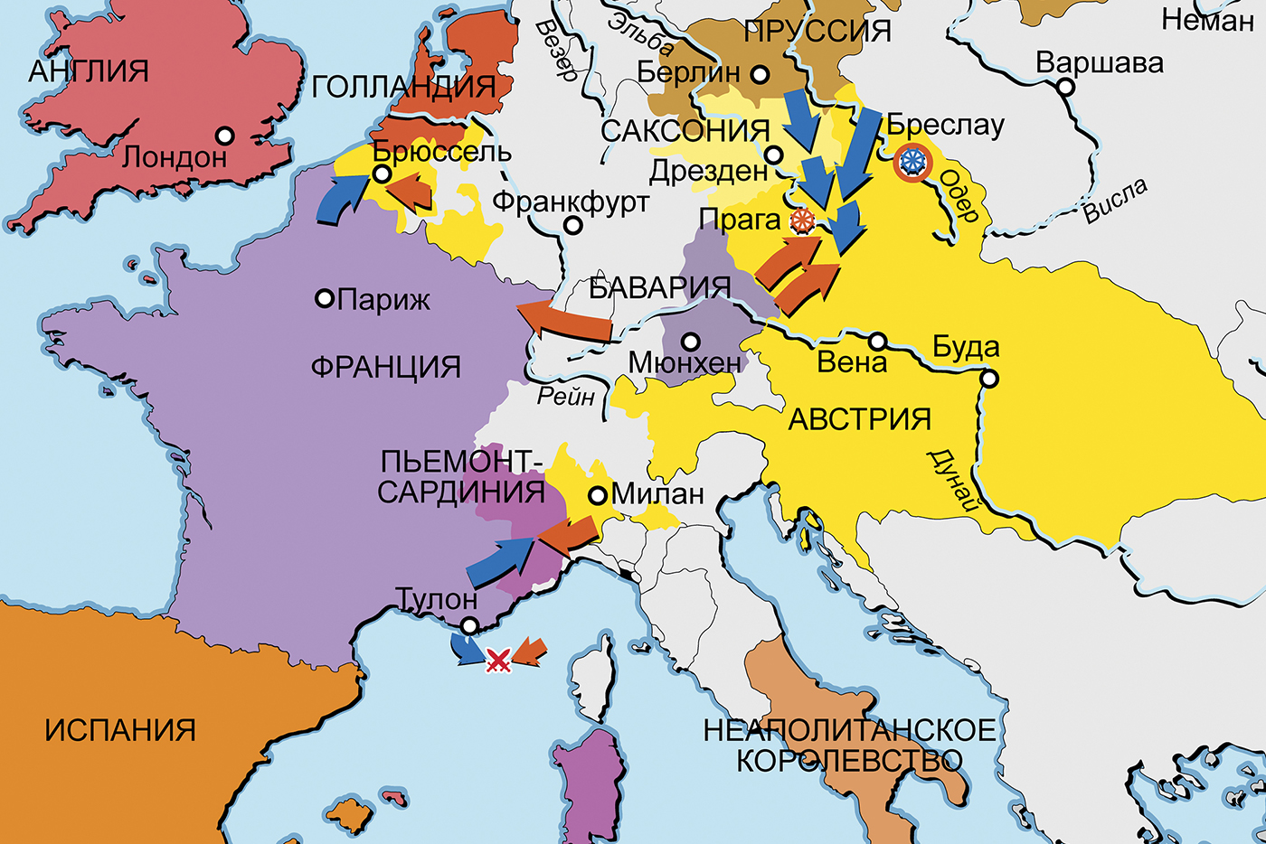 Полки Англии, Испании, Франции, Швеции, Австрии, Баварии, Саксонии, Пруссии