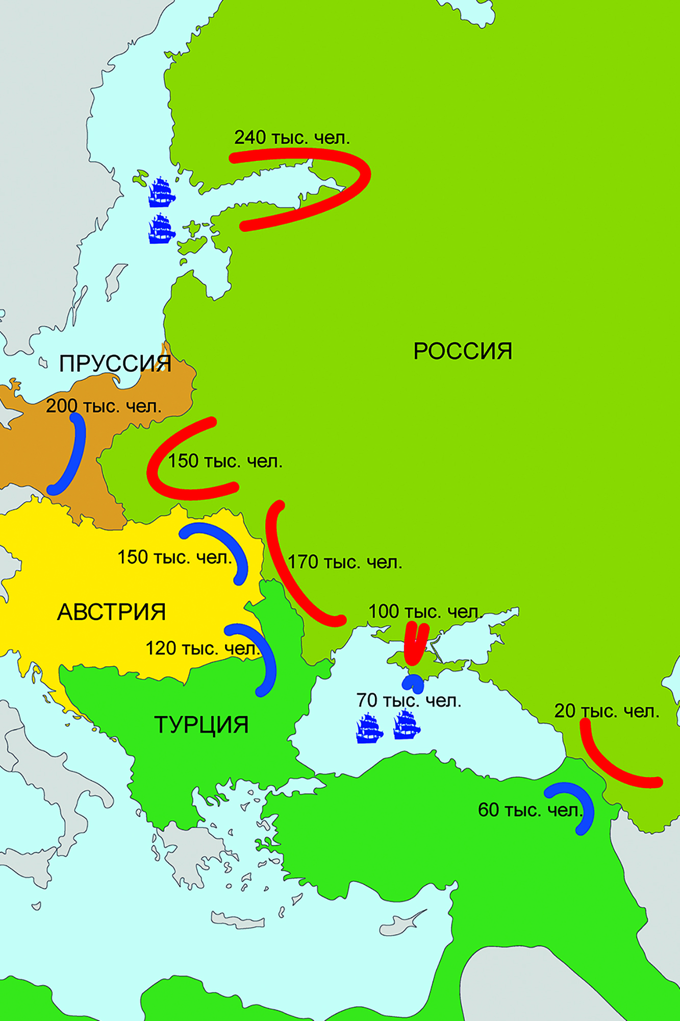 Карта дислокации войск противоборствующих сторон в 1854 г. (Крымская война 1853–1856 гг.)