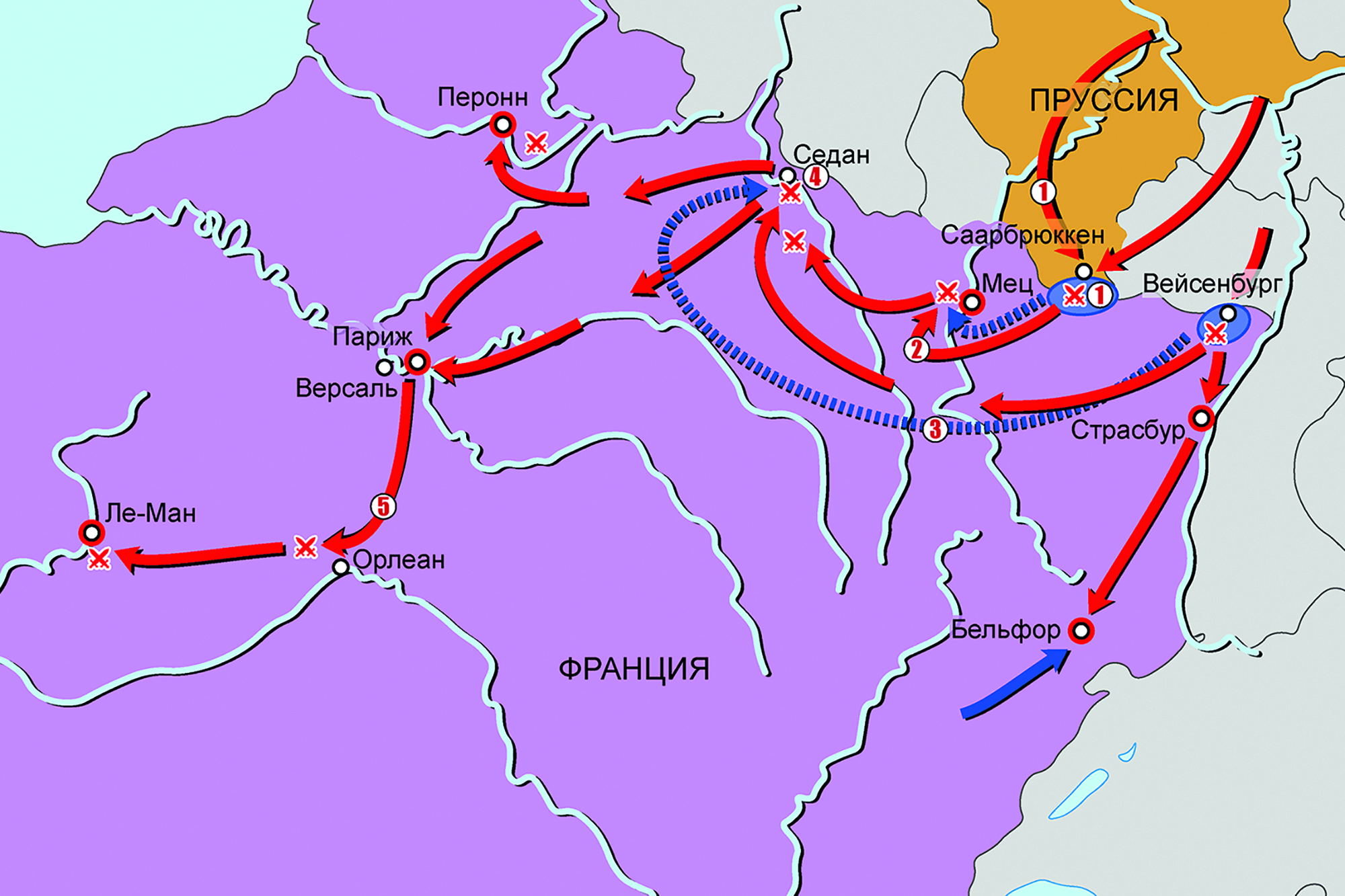 Карта кампаний 1870–1871 гг. (Борьба за объединение Германии 1862–1871 гг.)