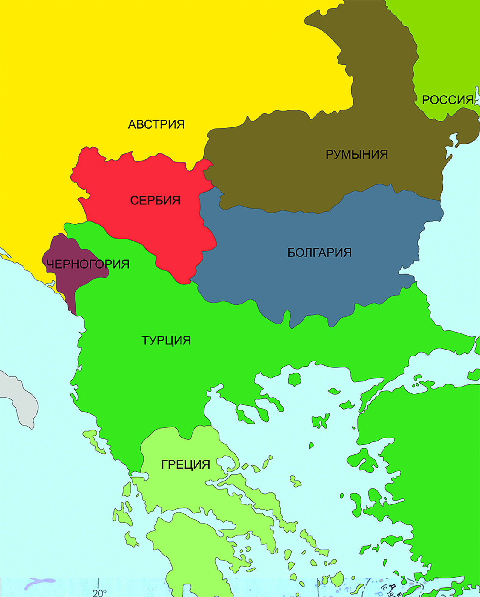 Карта до начала Первой Балканской войны, 1912 г.