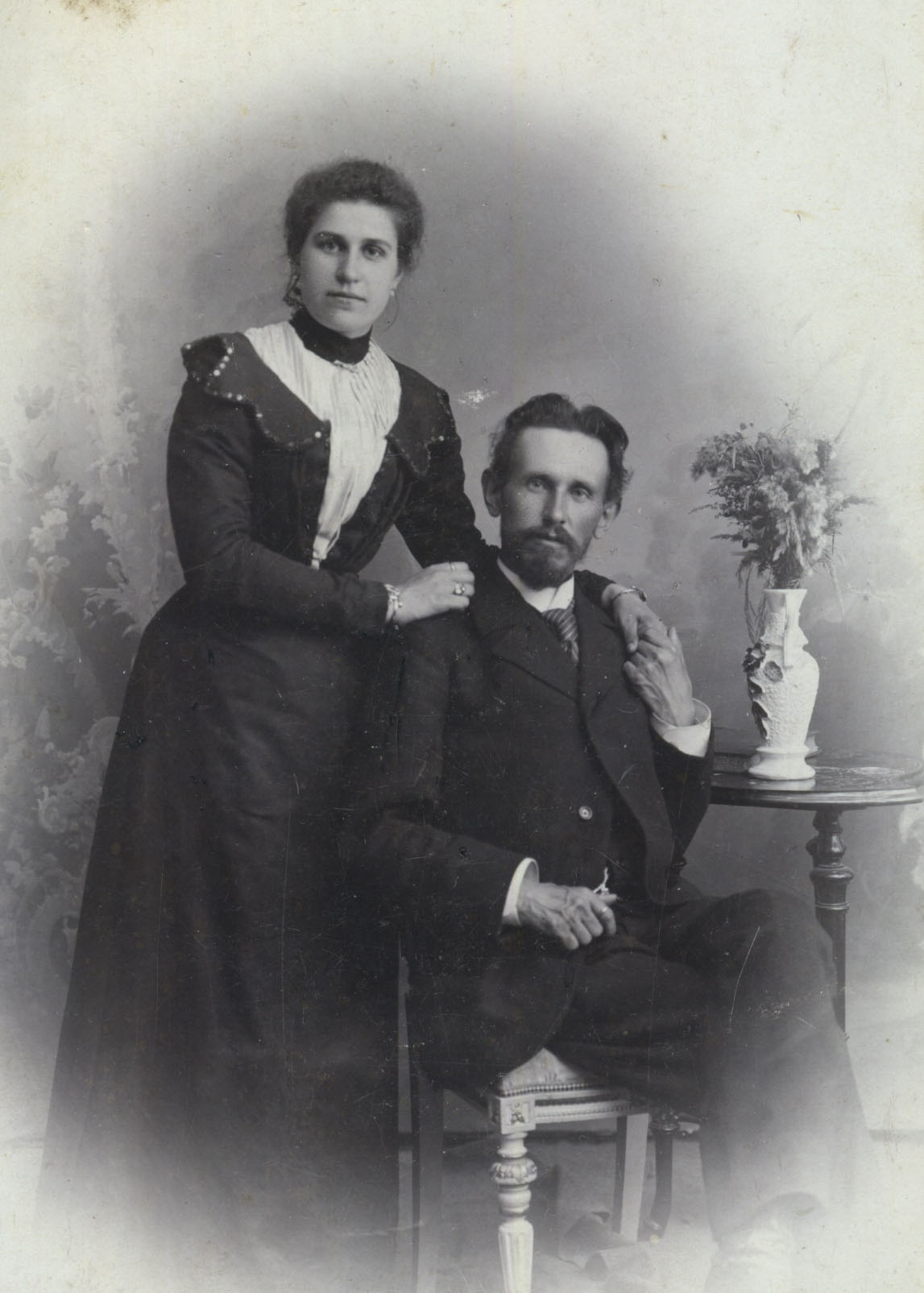 Фото Н. Сажина, Муром. Портрет Петра Ивановича Целебровского с женой Марией Семеновной (урожденной Ершовой). 1901. На паспарту:18х12.