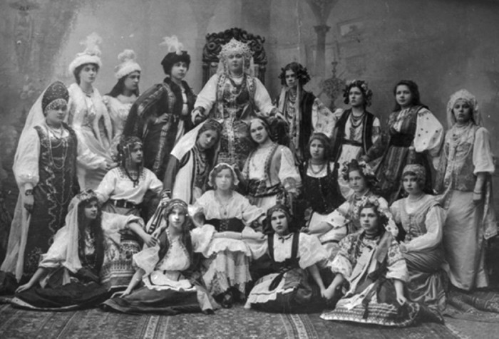 Учащиеся второй женской гимназии в костюмах для Славянского вечера.Нижний Новгород.