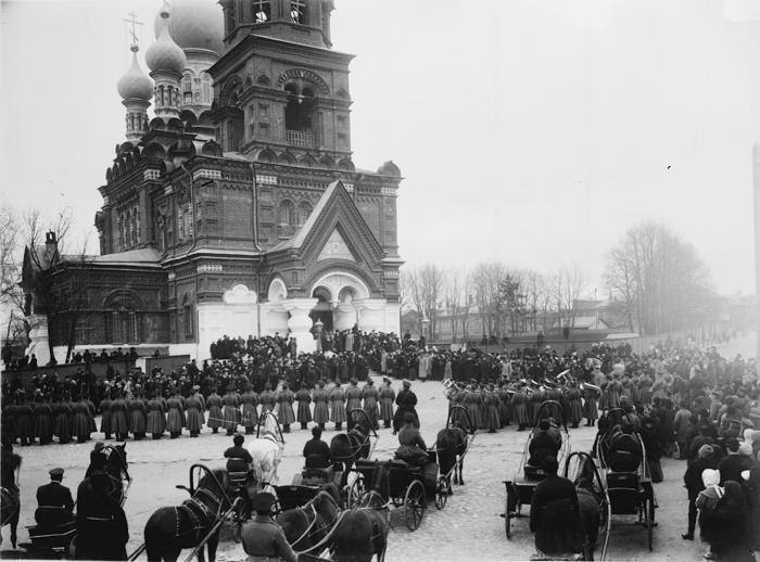 Парад войск около Спасской церкви.