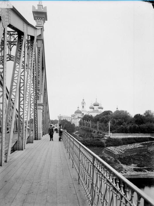 Общий вид Преображенского собора, губернаторского сада и моста через реку Волгу. Тверь.