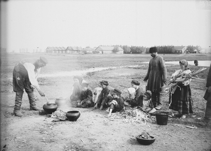 Переселенцы – украинцы за варкой пищи. Нижний Новгород.