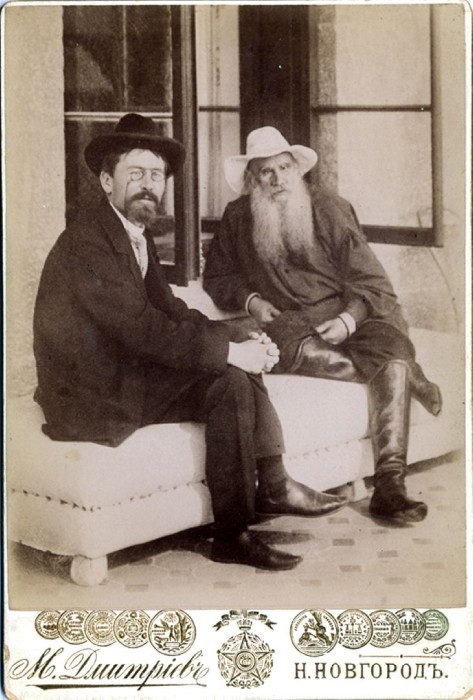 А.П. Чехов и Л.Н. Толстой сидят на диване. Нижний Новгород.