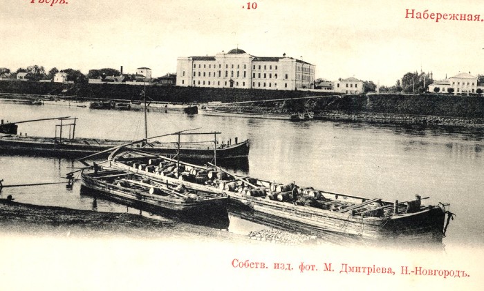 Общий вид набережной реки Волги и Епархиального женского училища. Тверь.