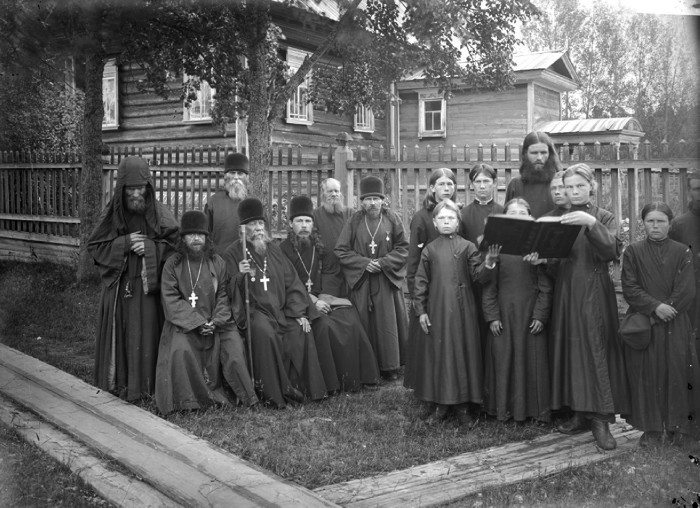 Благовещенский Керженский единоверческий монастырь. Группа монахов с настоятелем Филаретом. Семеновский уезд.