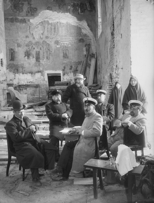 Макарьевский монастырь. Троицкий собор. Члены Нижегородской ученой архивной комиссии осматривают собор.