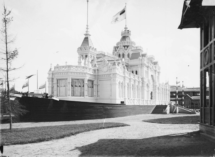 XVI Всероссийская промышленно-художественная выставка. Отдел Волжско-Камского пароходства. Внешний вид здания. Нижний Новгород.
