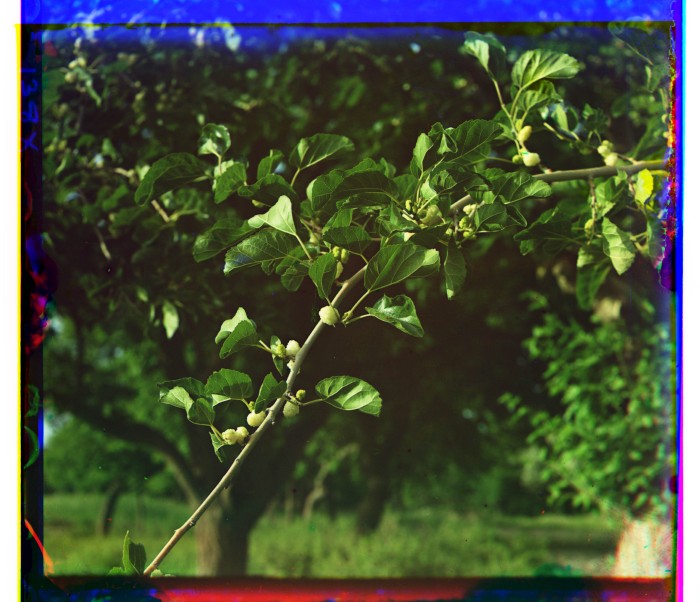 Шелковица. Кутаисская губерния, местоположение предположительно. Шелковичное дерево, шелковица, тутовое дерево, известно до 10 видов, дико растущих в умеренном климате северного полушария и на горах под тропиками. Деревья или кустарники. Цветки мелкие. Плод мясистый (тутовая ягода). Наиболее известны два вида тутового дерева: М. alba и M. nigra, листья первого вида идут на корм шелковичных червей.