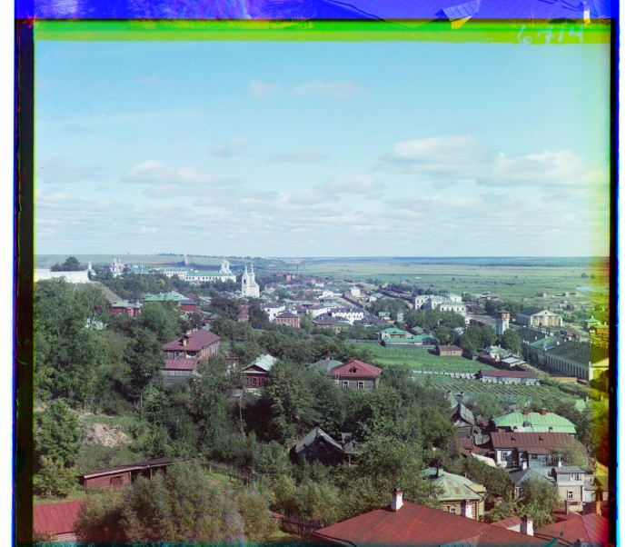 1911. Вид от Успенского собора с юго-запада. Фотография вошла в альбом "Российская Империя в цвете, 1909-1915, Владимирская и Ярославская губернии".