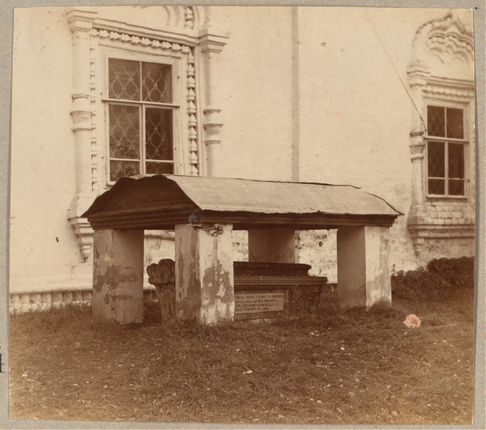 Посад Пучеж. Могила в ограде Заречной церкви. Надпись: Под сим канем покоится прах рабы Божией инокини Аркадии скончавшейся 1839-го года генваря 22 дня.