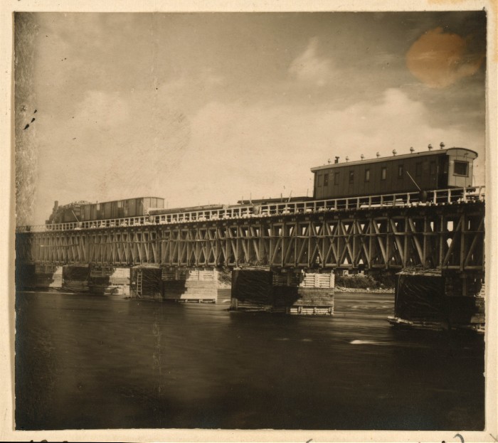 Архангельская губерния, Кемский уезд. Ледорезы моста через р. Онду у ст. Сороки.