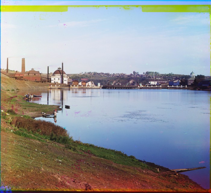 Общий вид Каменского завода с запрудой.