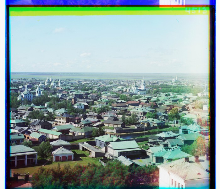 Тобольск, вид с сев.-вост. Вдали видно слияние реки Тобола с Иртышом. Тобольская губерния.