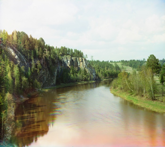 Общий вид на камень Винокурный с его отрога. Река Чусовая, Пермская губерния.