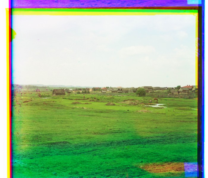 Общий вид деревни Макаровой. Река Чусовая, Пермская губерния.