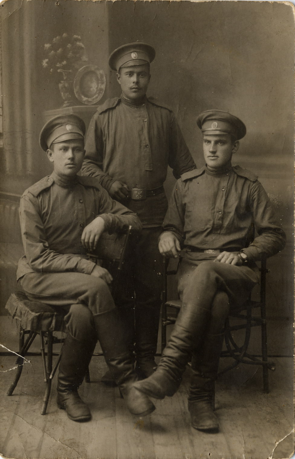 Неизвестный фотограф. Евгений Михайлович Яковлев (1-й справа) с двумя неизвестными. Муром, 1910-е гг.