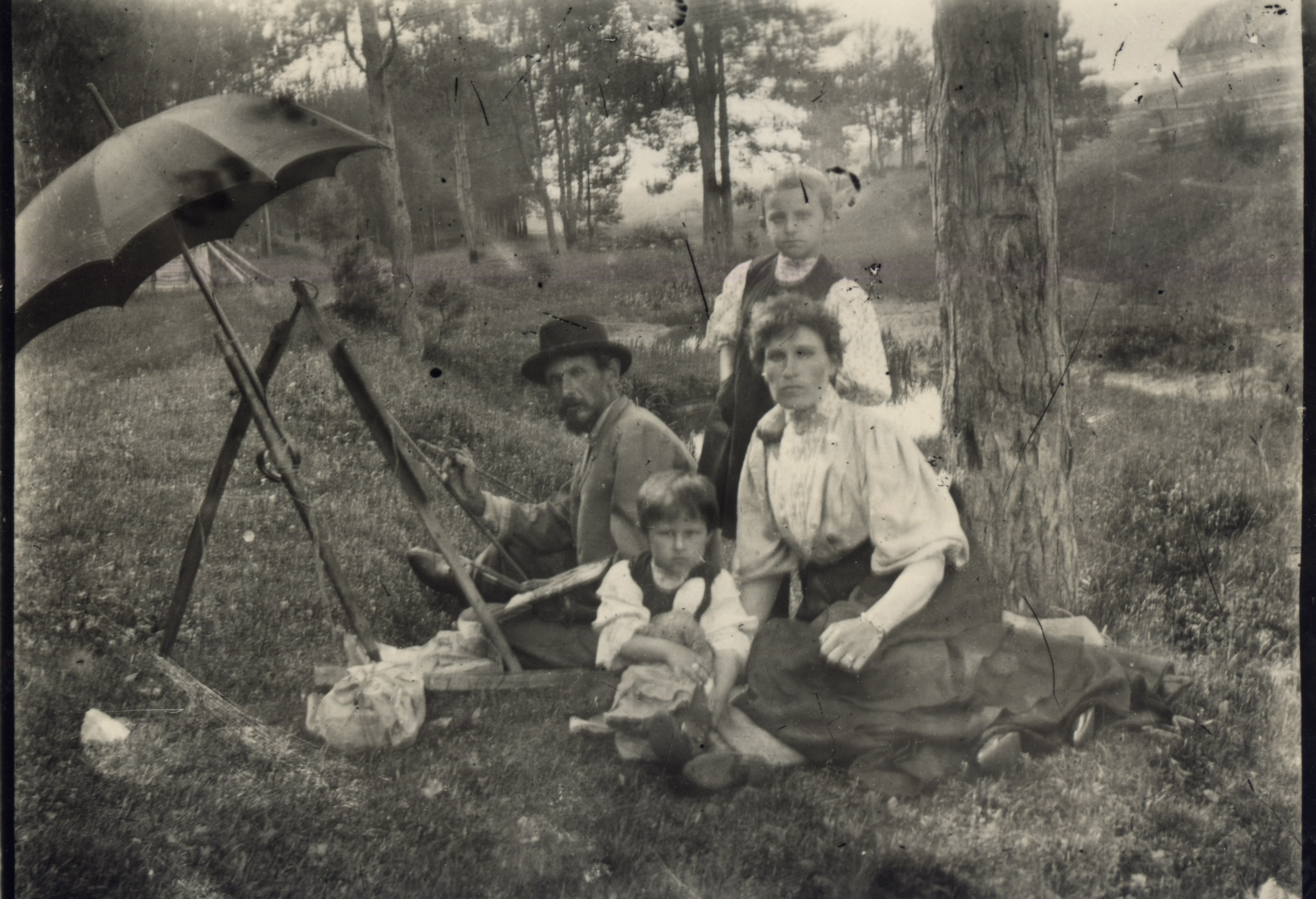 Художник Петр Целебровский с женой и детьми на пленере в окрестностях Мурома. Около 1907-1909 гг.