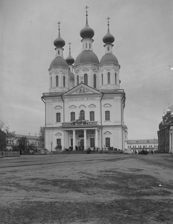 Вид Саровского мужского монастыря. Успенская церковь (1770 - 1777 гг.). Вид с восточной стороны, где первоначально почивали мощи святого Серафима Саровского. Автор: М.П. Дмитриев Место события: г. Саров, Тамбовская губерния Дата: 1904 г.
