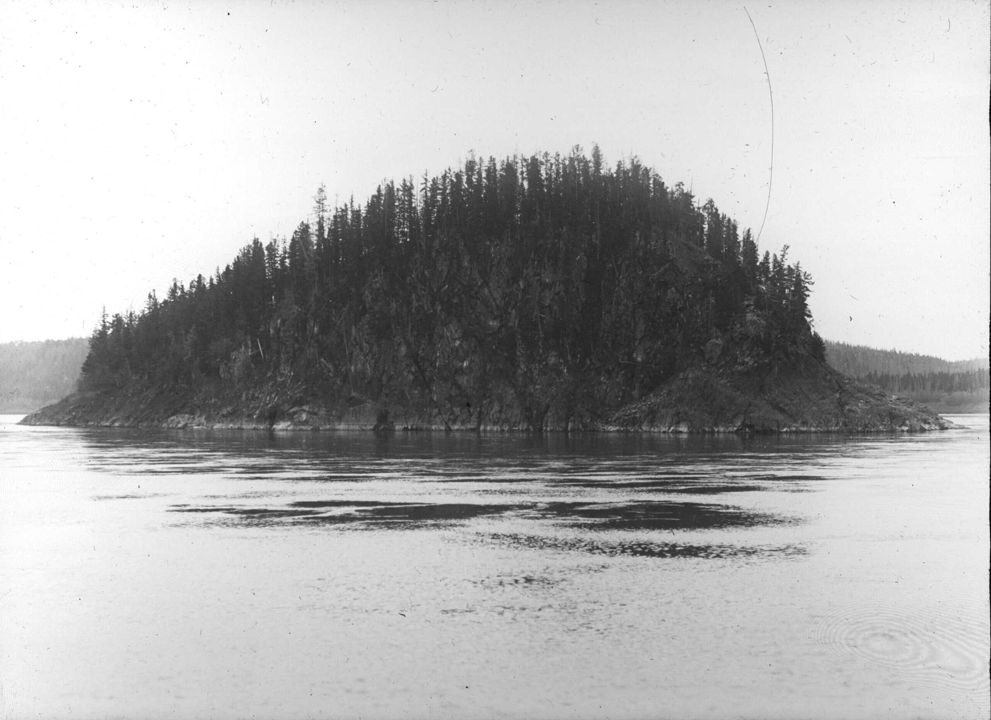 Общий вид на остров Кораблик на реке Енисей. Автор: В.А. Зевеке Место события: река Енисей Дата: 18 сентября 1914 г.