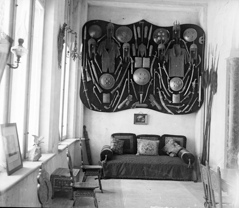 Интерьер комнаты. На стене – коллекция оружия. Автор: А.А. Зевеке Место события: г. Н.Новгород Дата: к. XIX - нач. ХХ вв.