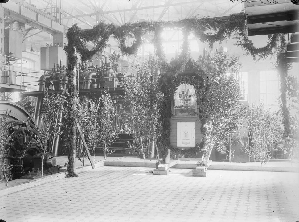 Сормово завод №112. Декорация в электрической станции (по случаю ее открытия). Дата: 1915 г. Место съемки: г. Н.Новгород Автор: М.П. Дмитриев