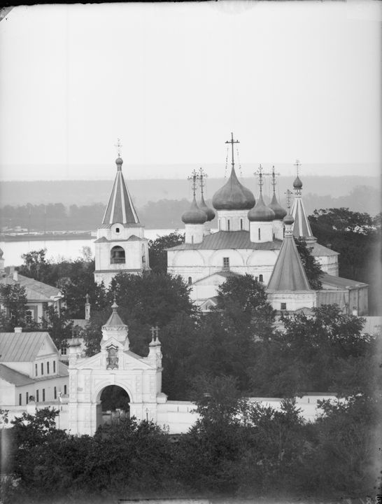 Печерский монастырь. Вид на монастырские ворота и Вознесенский собор. Дата: к. ХIХ в.Автор: М.П. Дмитриев Место съемки: г. Н.Новгород