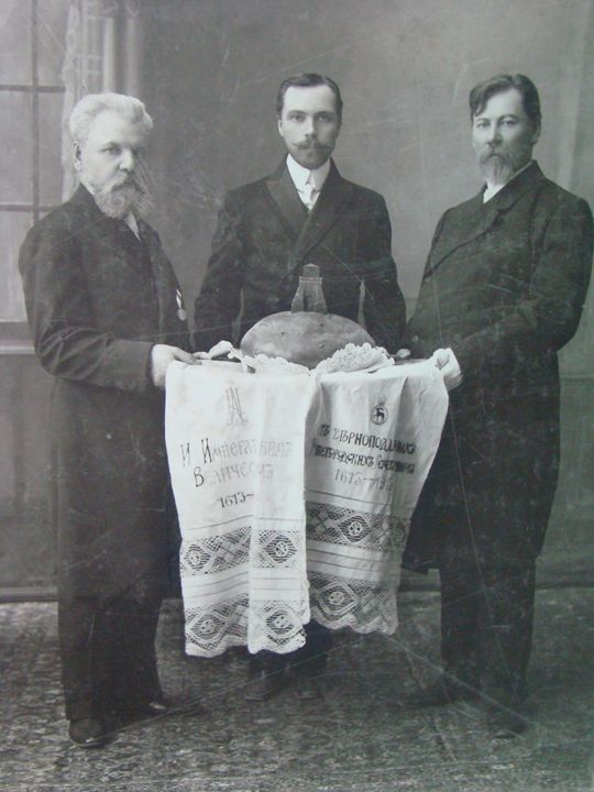 Визит Николая II на празднование 300-летия дома Романовых в г. Н.Новгород. Портрет нижегородских ремесленников, встречающих Николая II хлебом с солью. Дата: 1913 г. Место съемки: г. Н.Новгород Автор: М.П. Дмитриев