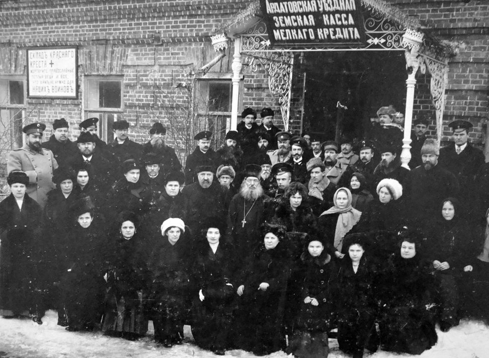 Мастерская местного отделения Ардатовского общества «Красного креста». Автор: С. Тимин Место события: Ардатов Дата: 1915 г.