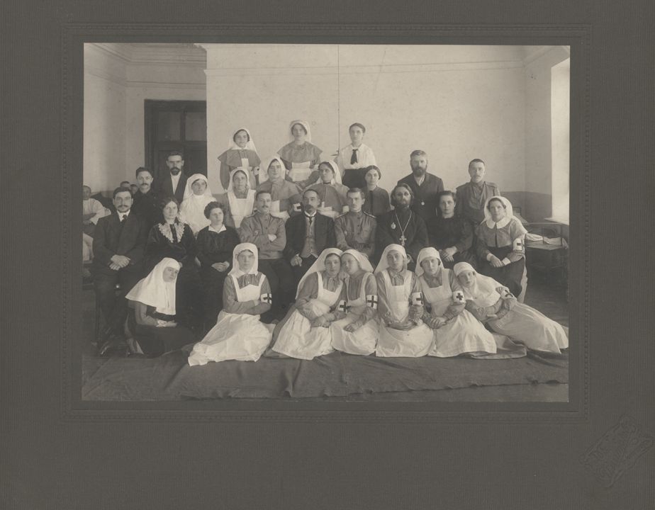 Раненые, больные и персонал всесословного клуба-лазарета. Автор: М.П. Дмитриев Место события: г. Н.Новгород Дата: 1915 г.