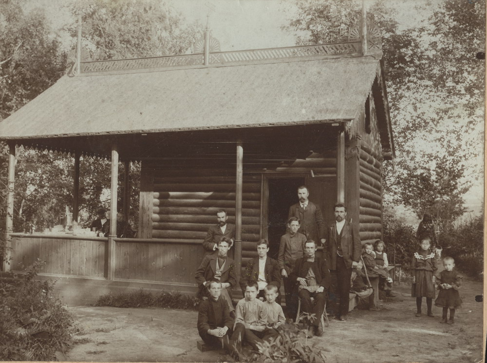 Фотограф неизвестен. Село Павлово, Горбатовский уезд. Портрет владельцев фабрики ножевых изделий В.М. и А.М. Теребиных с детьми и родственниками на даче. 1905г.