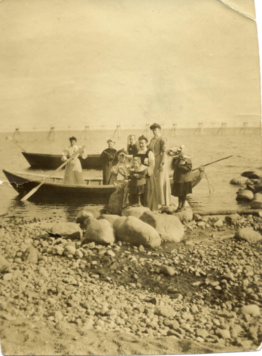 Наталия Павловна Дурдина с дочерьми и неизвестными женщинами на берегу залива