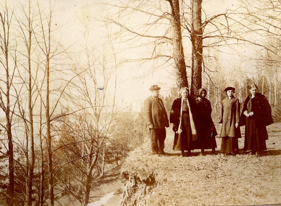 Наталия Павловна Дурдина с матерью и неизвестными женщинами у лестницы перед домом
