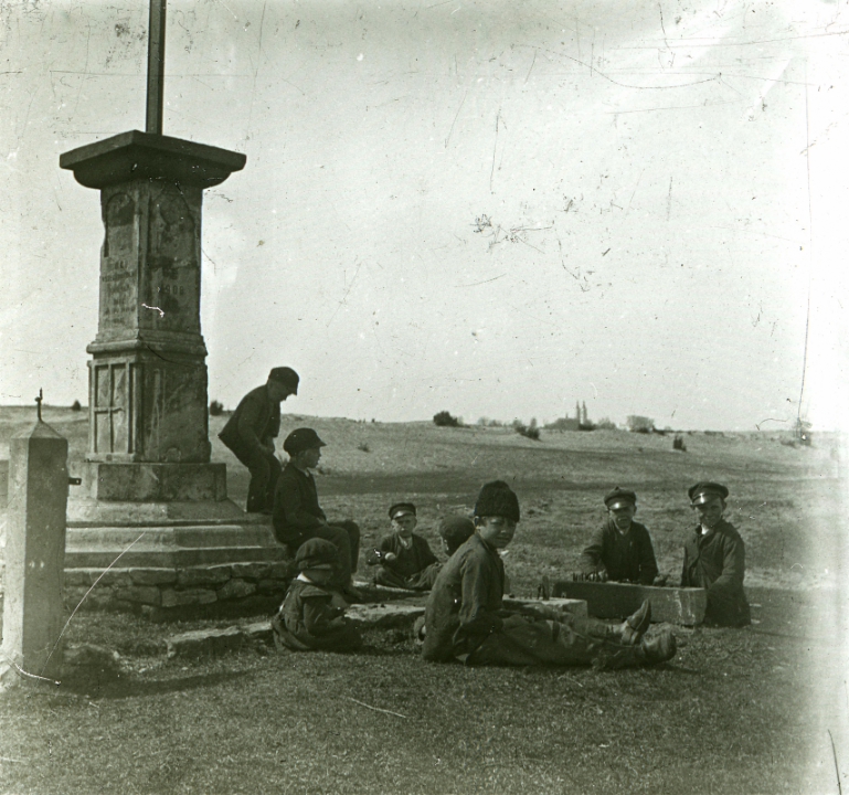 Группа детей у каменного столба