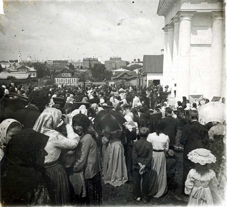Наталия Павловна Дурдина с матерью и неизвестными женщинами у лестницы перед домом