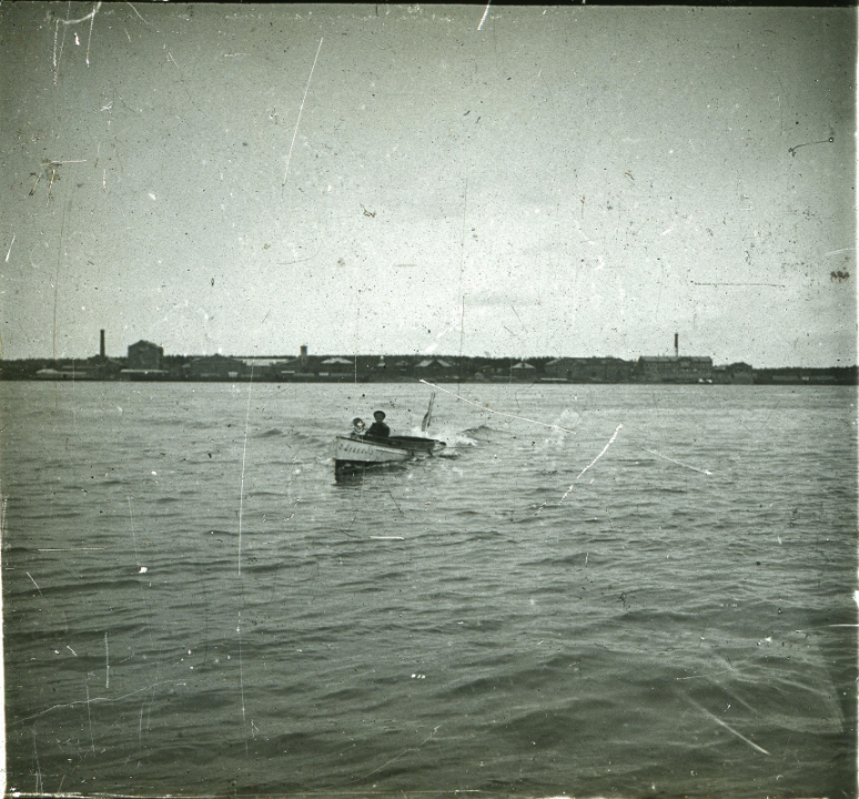 Моторная лодка, плывущая по реке
