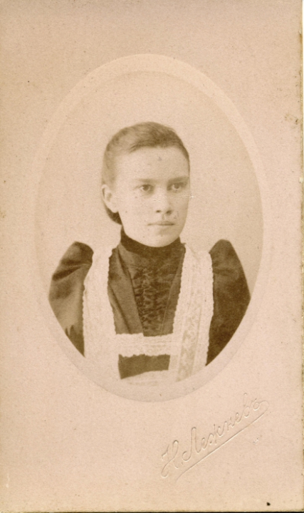 Наталия Павловна Дурдина с матерью и неизвестными женщинами у лестницы перед домом