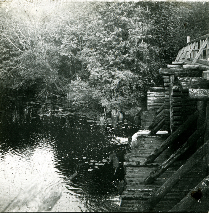Деревянная плотина на реке