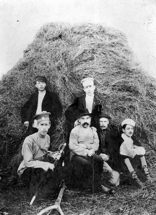 Наталия Павловна Дурдина с матерью и неизвестными женщинами у лестницы перед домом