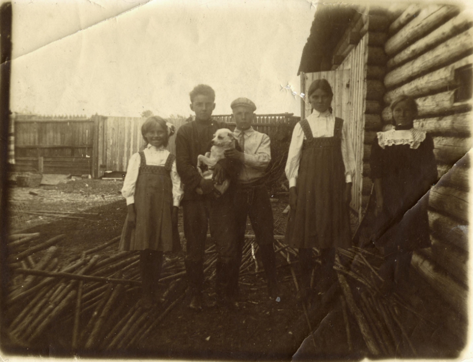 Наталия Павловна Дурдина с матерью и неизвестными женщинами у лестницы перед домом