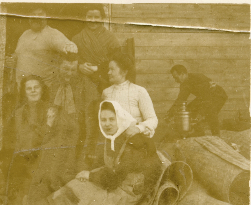 Наталия Павловна Дурдина с матерью и неизвестными женщинами у лестницы перед домом